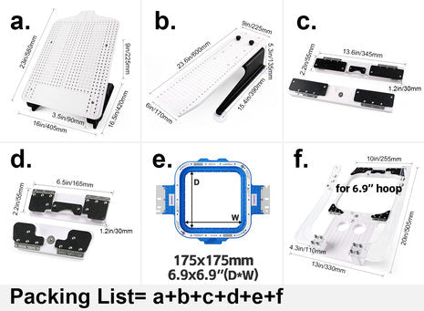 For Hooping Station – 6.9" Hooping Station Kit (packing list= a+b+c+d+e+f)