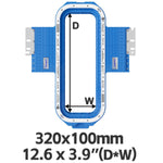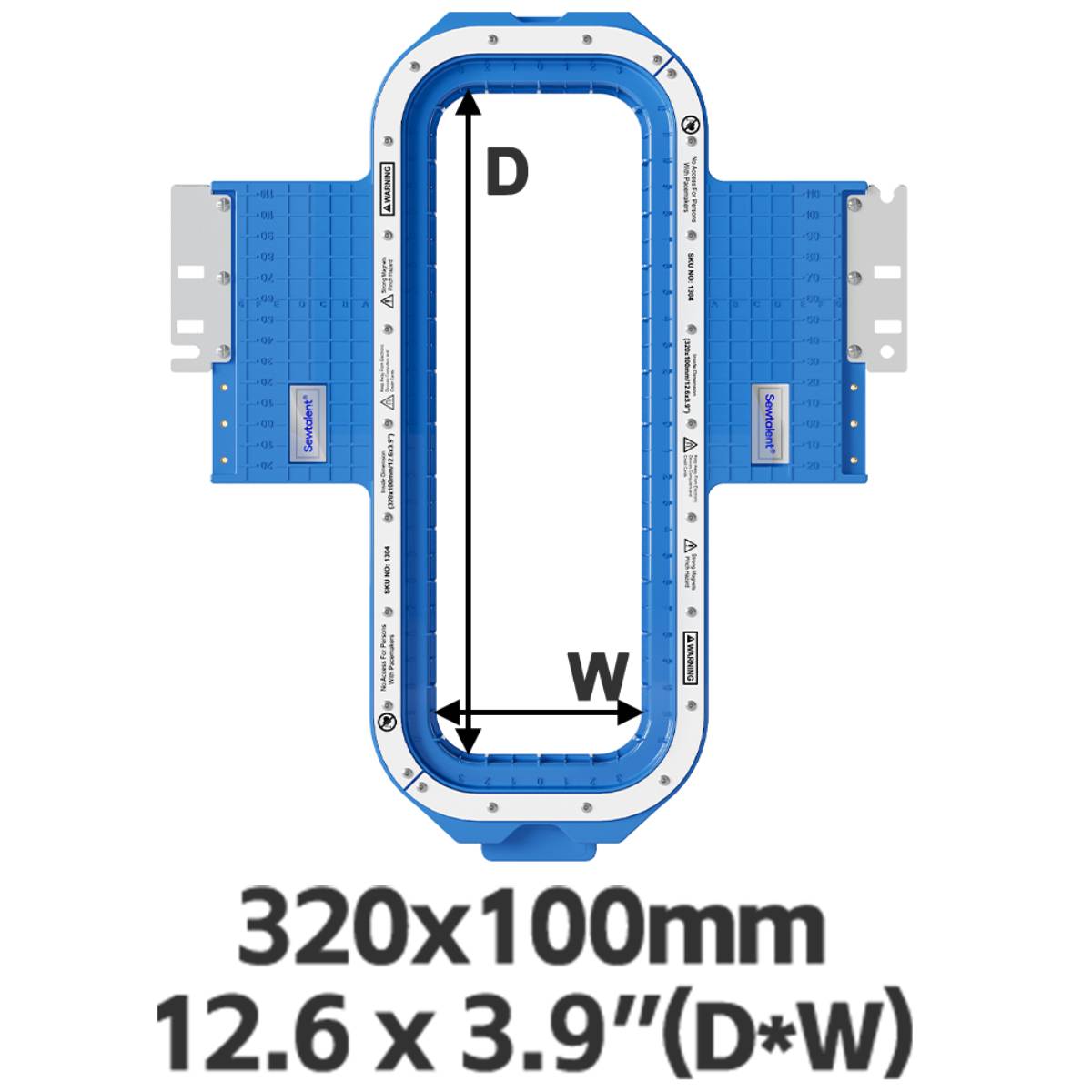 12.6″x3.9″(320x100mm) refers to the inner hoop dimension. The actual sewing field is about 11.8″x3.1″(300x80mm).