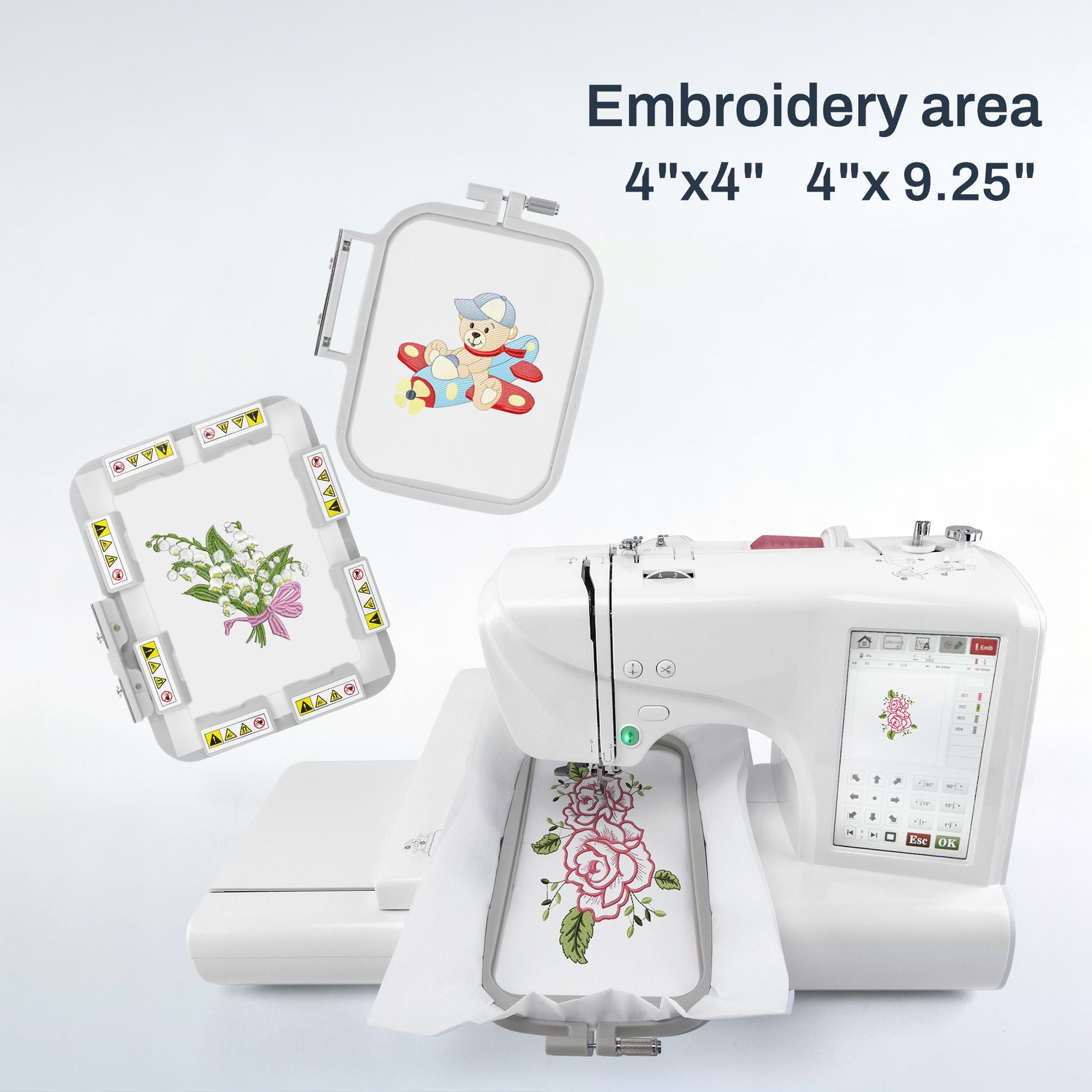 ✅ Generous 4" x 9.25" Embroidery Area – Includes both a 4"x4" and a 4"x9.25" hoop, perfect for sleeves, tote bags, hoodies, pillowcases, and more.
